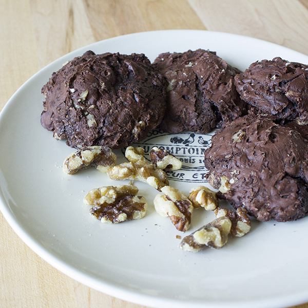 Who knew that flourless cookies could taste so good! These rich and chocolatey cookies with walnut folded throughout will take you by surprise.